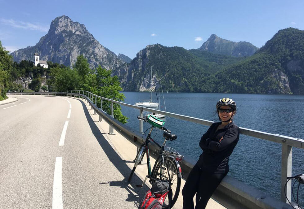 Citando apenas os que já pedalei, países como Alemanha, Suíça e Áustria também são excelentes. A imagem da ciclovia ao lado do lago é na Áustria. Sim, todo aquele espaço é uma ciclovia. Os carros passam por uma pista paralela.